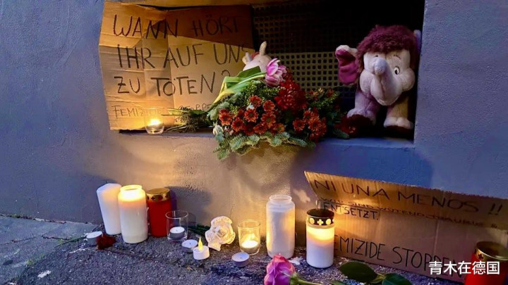 案发第二天,人们在公寓楼前摆放了鲜花和蜡烛,以及写着“停止杀害女性!”和“你们何时才能停止杀害我们?”的纸板标语。