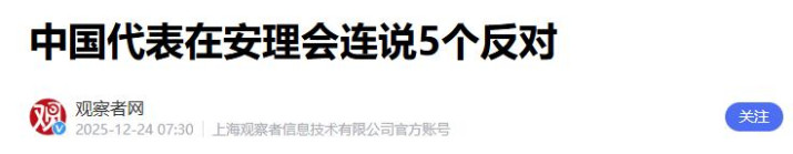 1.《中国代表在安理会连说5个反对》2025-12-24 07:30 | 来源:观察者网