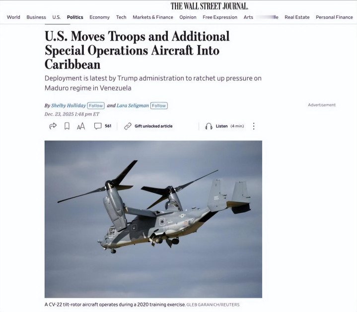 2.《美媒:美国向加勒比地区增派美军人员装备及特战飞机》2025-12-24 07:32 | 来源:中国新闻网
